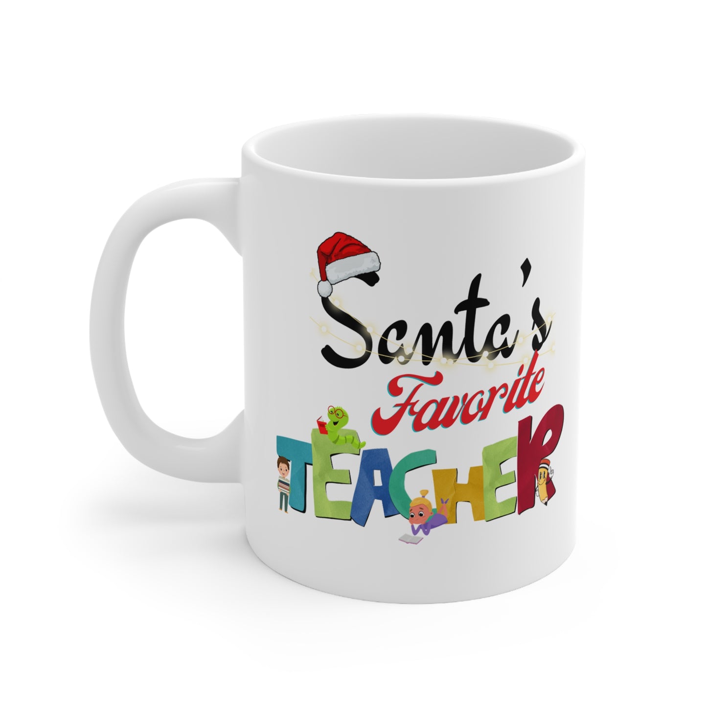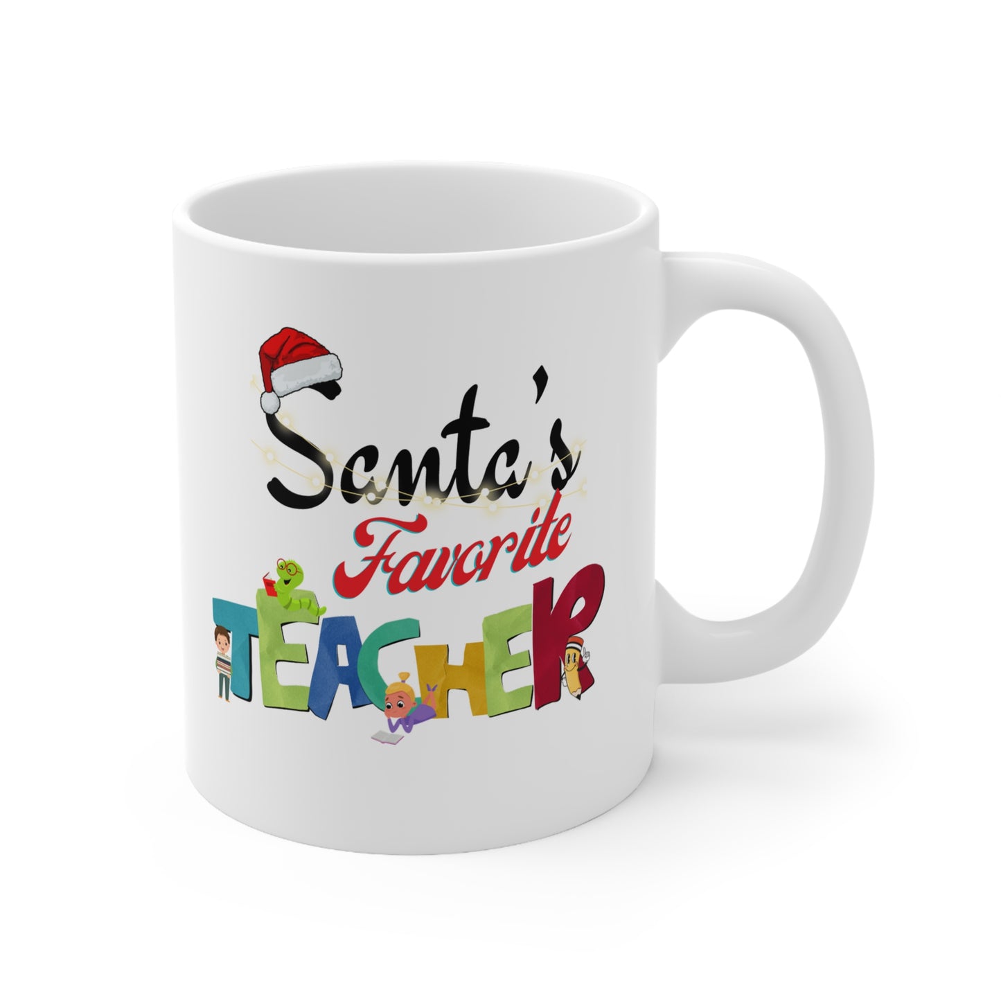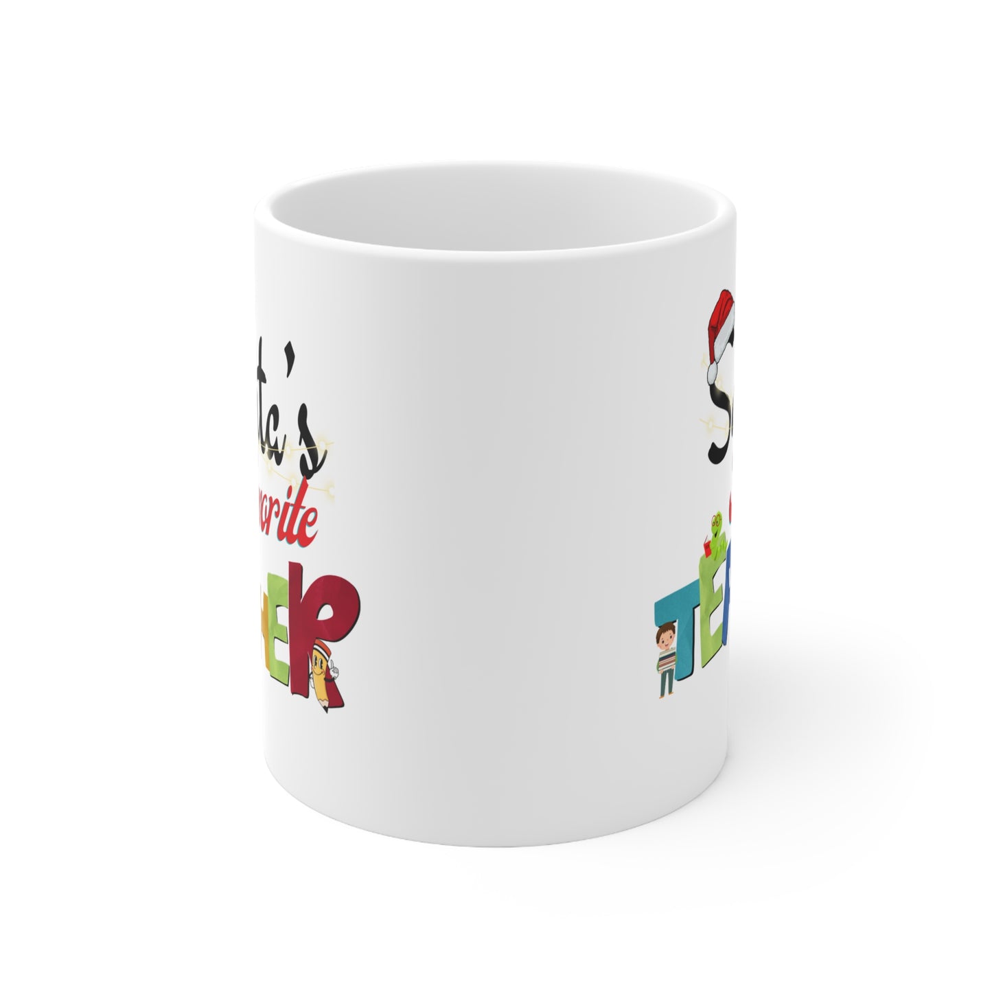 Santa's Favorite Teacher White Ceramic Coffee Mug 11oz